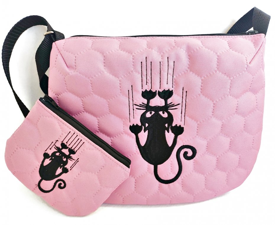 Torebka i portmonetka zapinane na suwak, długość paska w torebce regulowana, bawełniana podszewka,