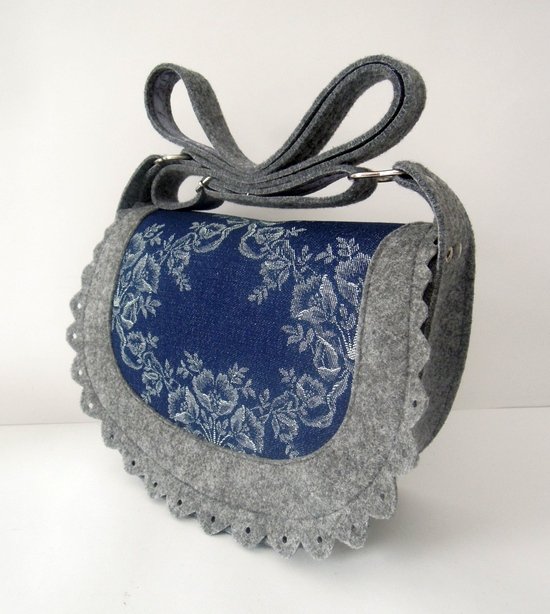 Prosta forma, ciekawie zdobiona motywem inspirowanym folkiem i tkaniną typu jeans w tłoczone kwiaty.