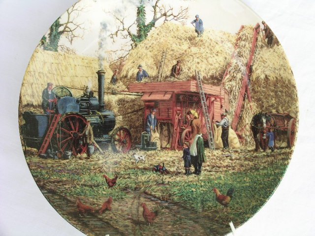Porcelanowy talerz dekoracyjny wysokiej jakości, sygnowany Wedgwood, z kolekcjonerskiej serii The Farm Year wg Michaela Herringa. Tutaj - listopadowe młócenie :) Precyzja malatury i błyszczące szkliwienie. 20,5 x 2 cm. Stan zachowania bardzo dobry.
