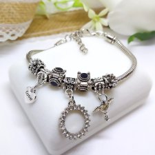 Literka z cyrkoniami + łańcuszek singapur 45cm.