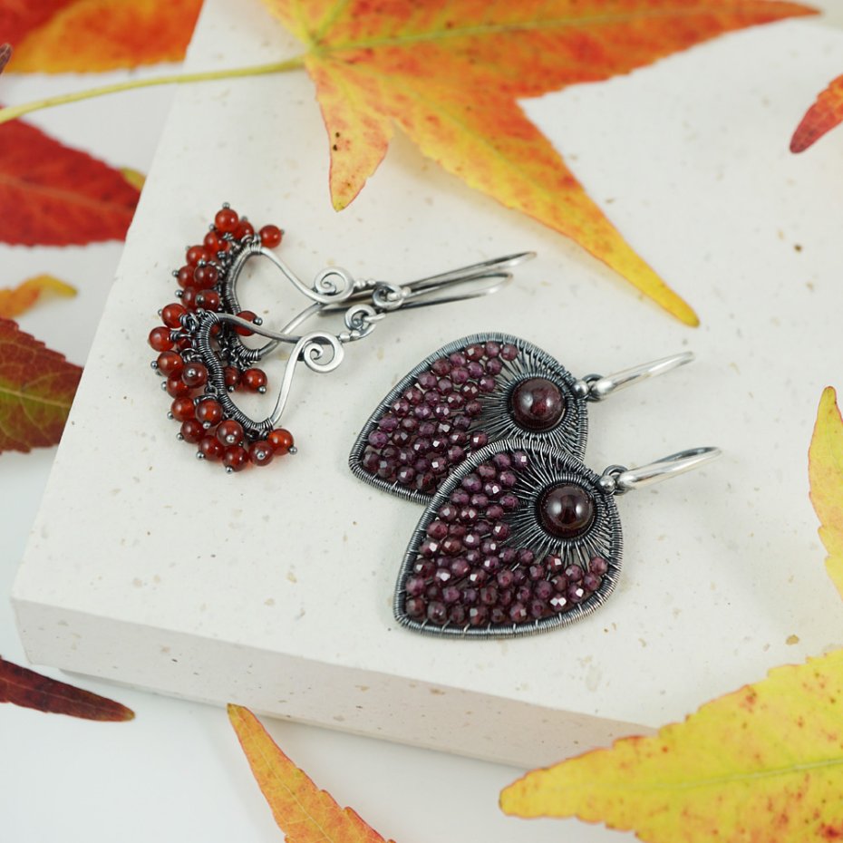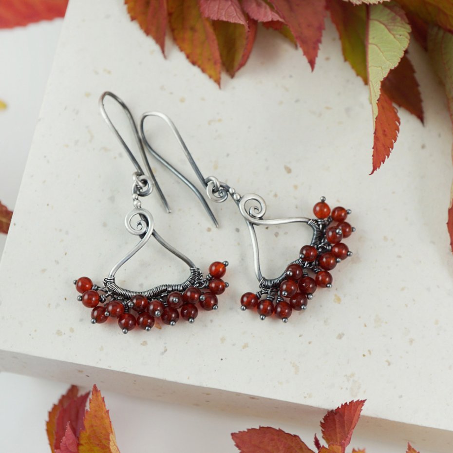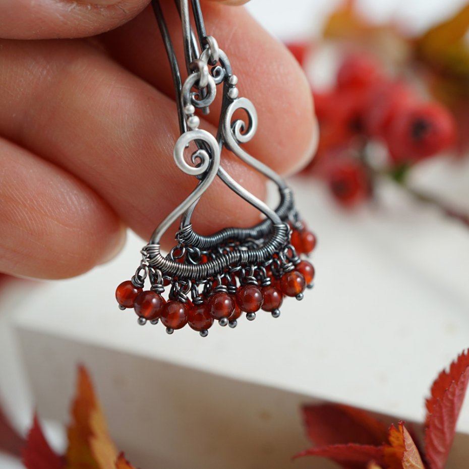 Tagi: #fantazyjne kolczyki srebrne, #jesienne kolczyki, #kolczyki srebrne z karneolem, #srebrne kolczyki próby 925
