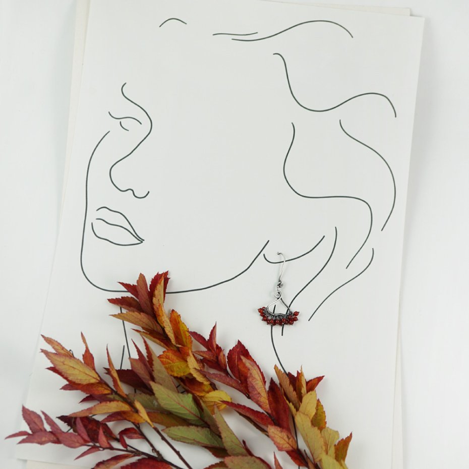 Delikatne, lekkie, a jednocześnie urzekające formą i kolorem, wiszące kolczyki przypominające grona jarzębiny, zmysłowo tańczące na uszach. Doskonałe dla miłośniczek niebanalnej biżuterii i energetycznych odcieni jesieni.