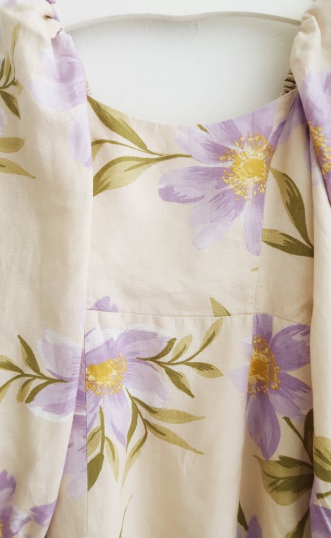 Lniana sukienka w pastelowe kwiaty.