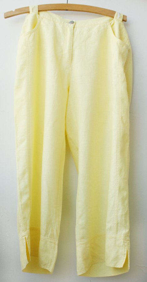 Lniane spodnie marki BRAX. Piękny kolor, który można porównać do cytrynowego sorbetu. Jest to jasny, ale nasycony odcień żółtego. Zdjęcie nie oddaje piękna koloru.