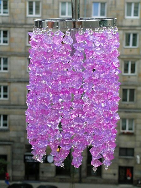 Nowa lampa sufitowa. Misternie ciekawymi, jak bryłki barwnego lodu koralikami zdobiona. Przyjemnie fakturowa. Elegancka i nowoczesna. Na miło ciepłe światło dająca. Żyłka jubilerska. Stelaż chromowy. W komplecie z żarówką wąskogwintową i kostką montażową.