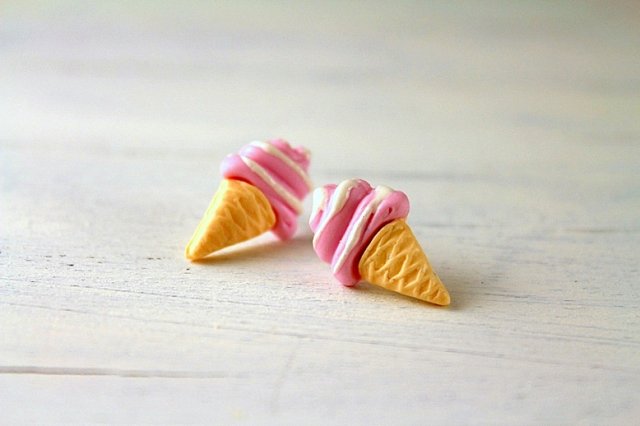 Witaj w moim sklepie. Mam do zaoferowania własnoręcznie wykonane z masy termoutwardzalnej fimo kolczyki sztyfty - lody truskawkowe z polewą.