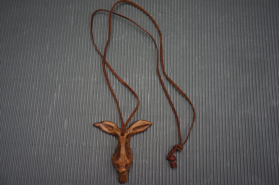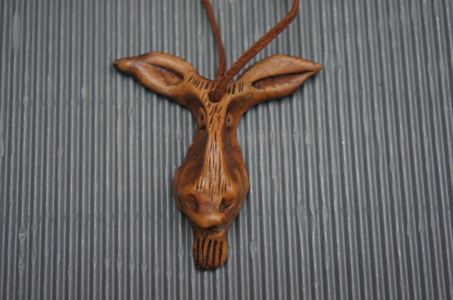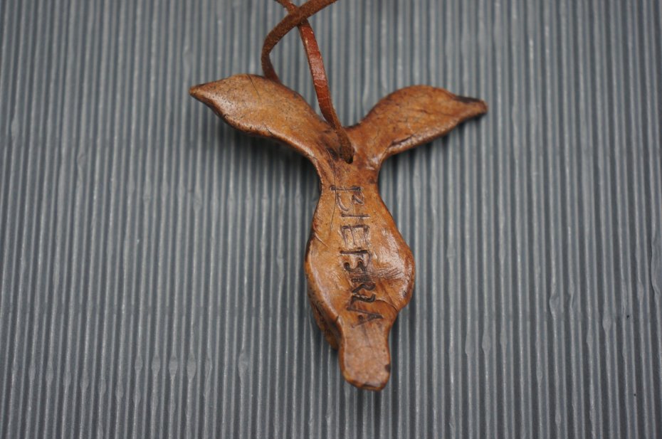 Drewniana zawieszka w kształcie głowy łosia. Stan bardzo dobry.