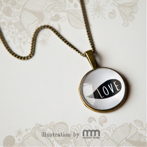 Naszyjnik LOVE to bardzo romantyczne, nostalgiczne i kobiece malutkie dzieło sztuki. Obrazek pod szkiełkiem to autorska grafika.