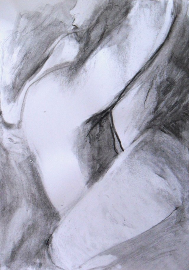 Rysunek w technice węgla i akrylu na białym brystolu,format obrazka 41,5x29cm.