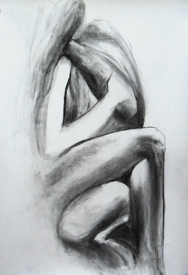 Rysunek w technice węgla na brystolu w tonacji ciepłej bieli.Format 50x70cm.