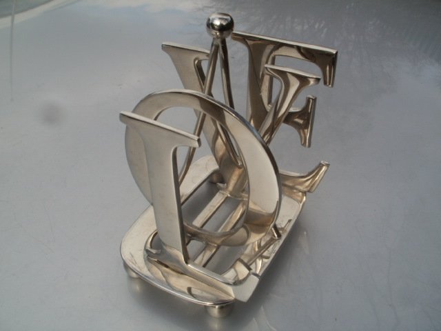 Oryginalny designerski przybornik metalowy. Sygnowany " culinary concepts london". Mocny, dość ciężki, porządnie wykonany. Na tosty, serwetki, listy, rachunki. ..Wygodny uchwyt z kulką na górze, cztery kulkowe stópki i litery. .. Love ;) Wykończenie błyszczące. Użytkowy, dekoracyjny, oryginalny. .. Podstawa trochę ponad 11,5 x 8 wys. Około 14 cm Stan zachowania bardzo dobry minus. Minimalne ślady użytkowania. Bez żadnych większych wad.