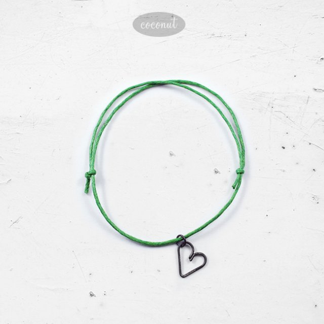 bransoletka z woskowanego sznurka, obwód regulowany - przesuwany supełek, serduszko ze srebra wykonane ręcznie, ok. 11 mm.