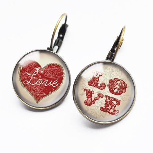 Kolczyki LOVE to bardzo kobiece i malutkie dzieła sztuki, które łączą nowoczesność z odrobiną antycznego powiewu. Obrazki pod szkiełkiem to słodka grafika.
