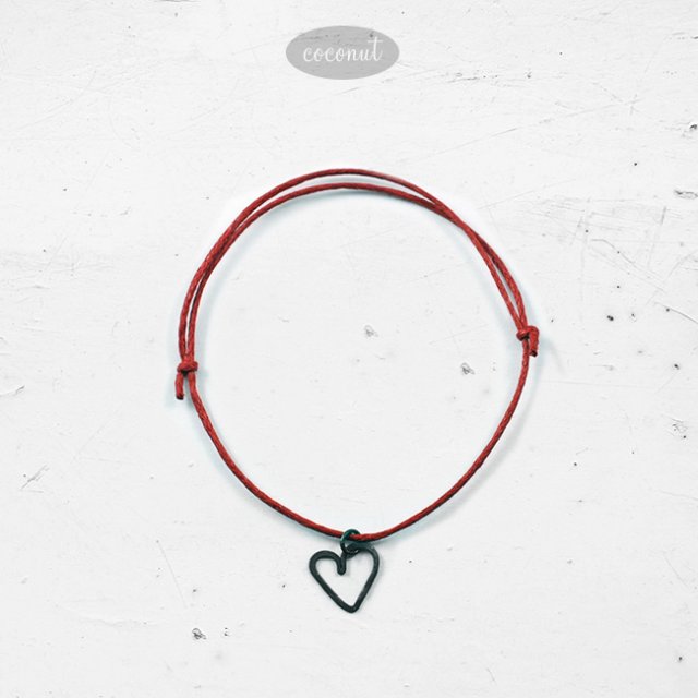 bransoletka z woskowanego sznurka, obwód regulowany - przesuwany supełek, serduszko ze srebra wykonane ręcznie, ok. 11 mm.