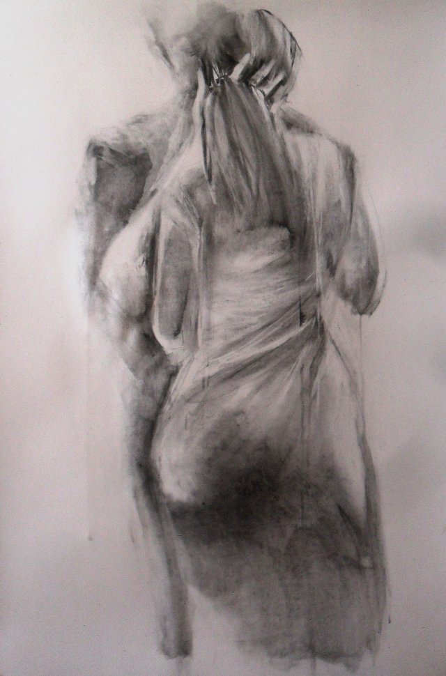 Węgiel na brystolu kredowym w tonacji ciepłej bieli,format 100x70cm.Polecam.