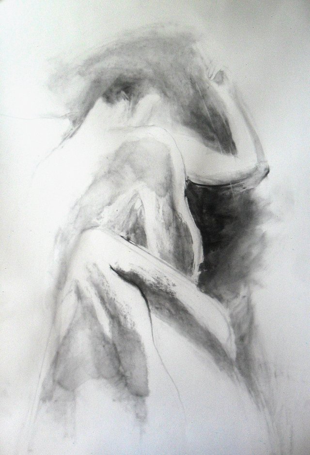 Rysunek w technice węgla na brystolu kredowym w tonacji ciepłej bieli.Format 100x70cm.