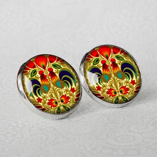 Delikatne, śliczne kolczyki na sztyfcie ( wkrętki) z unikatową grafiką,zatopioną pod wypukłym szkiełkiem i oprawioną w hipoalergiczną bazę w kolorze srebra. Grafika jest najwyższej jakości, wyraźna i nasycona. Oryginalne kaboszony wykonane ręcznie według mojego projektu i przeze mnie, z dbałością o każdy detal.