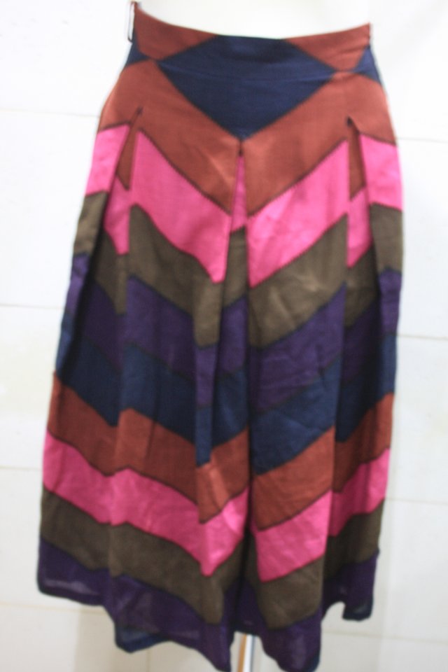 świetna kolorowa spódnica vintage z kontrafałdami, na podszewce, zapinana z boku na suwak