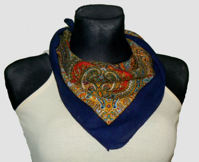 Kwadratowa mała apaszka gawroszka z bawełny o ciekawym ludowym motywie.
