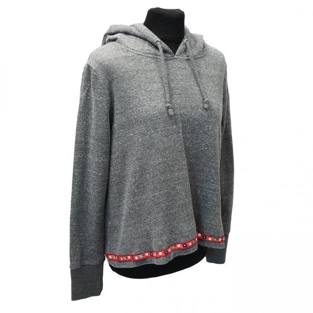Śliczna bluza w ciemnym szarym kolorze wykończona ludową tasiemką