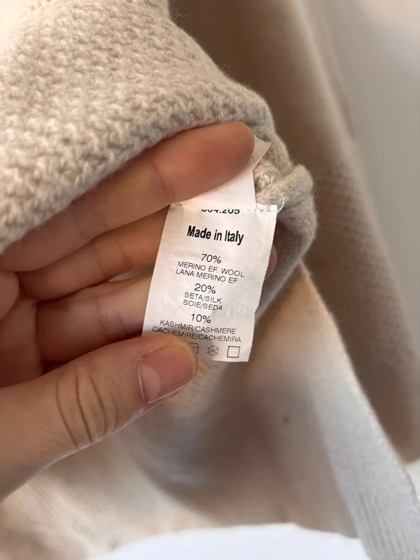 Skład premium: 70% wełna merynosa, 20% jedwab, 10% kaszmir — miękki, ciepły i niezwykle przyjemny w dotyku.
