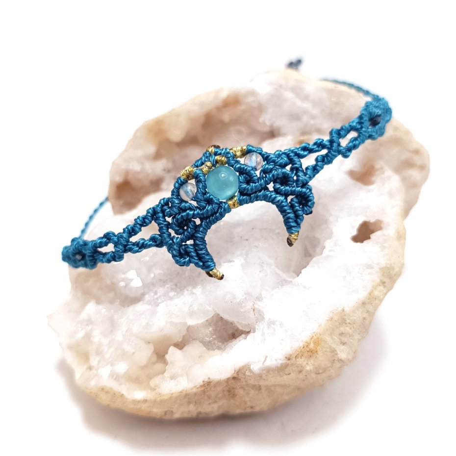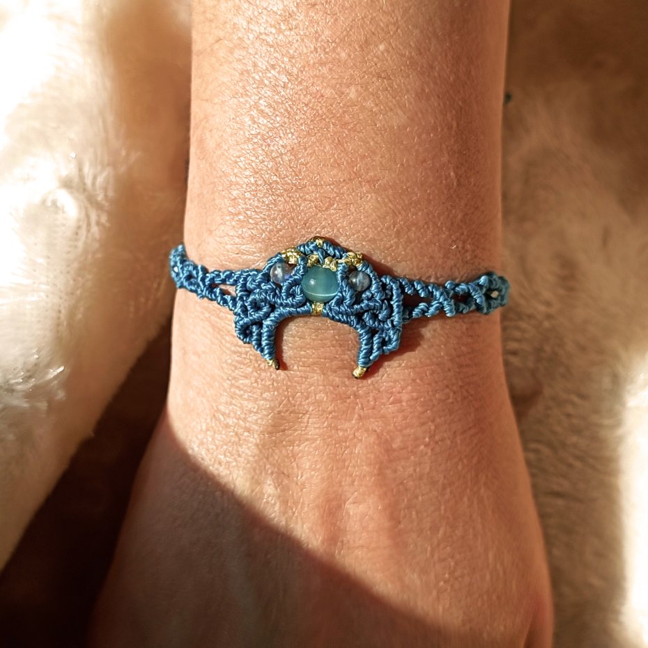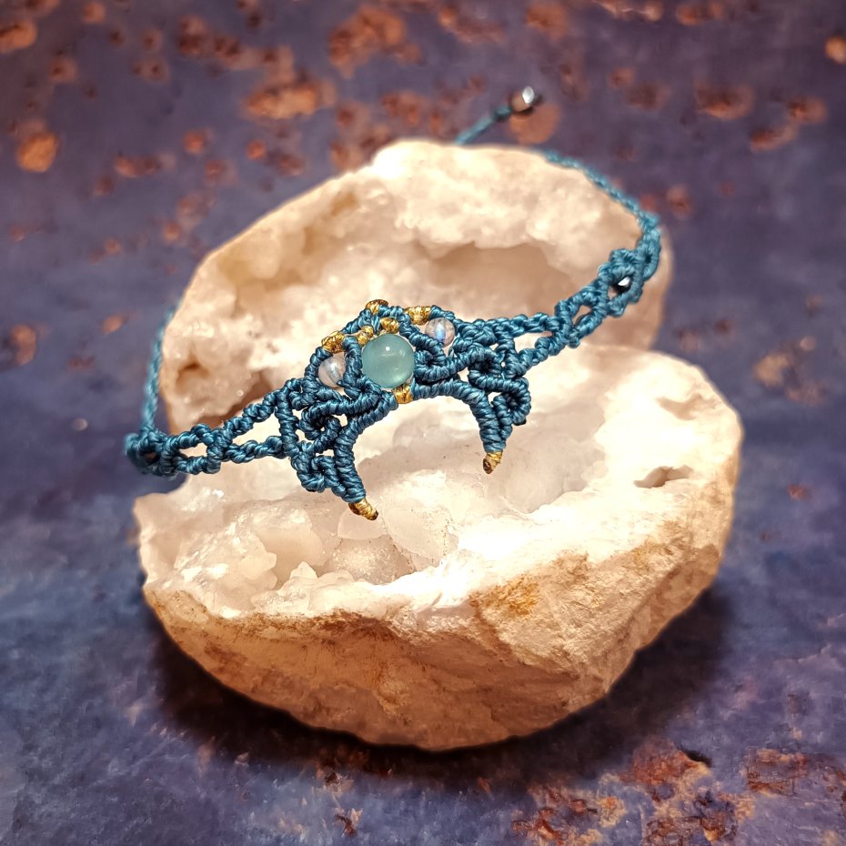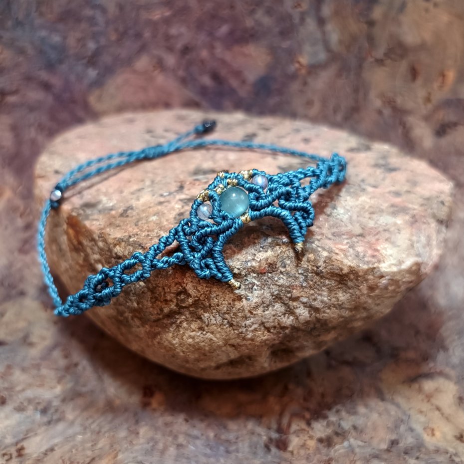 Mikromakrama w połączeniu z naturalnymi kamieniami jest biżuterią elegancką, ciepłą w dotyku, lekką, miłą w noszeniu na co dzień i do wyszukanej kreacji.