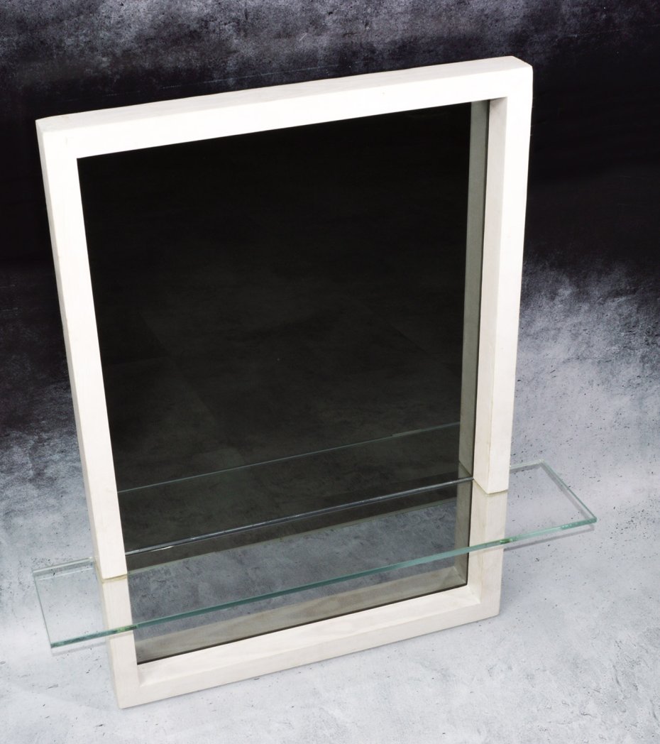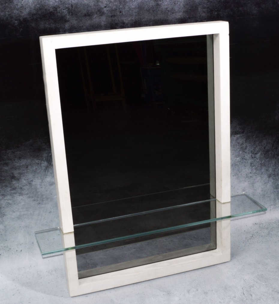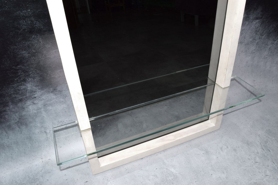 Szklana półka z hartowanego szkła (10 mm) przecina kompozycję i dodaje jej funkcji – to miejsce na to, co chcesz mieć pod ręką, ale jednocześnie pokazać: kosmetyki, zapach, klucze, drobne obiekty codzienne.
