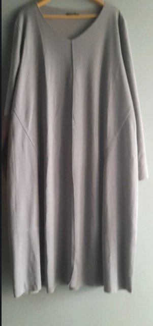 Minimalistyczna sukienka z bdb gatunkowo dzianiny, surowe wykończenia, dekoracyjne, dyskretne przeszycia nadające kształt, lekko zwężana "bombkowa" na dole, rozmiar od 46, na mniejsze bardzo over, długość 120,pod pachami 68x2 bez naciągania, niszowa marka z gurnej półki stan idealny
