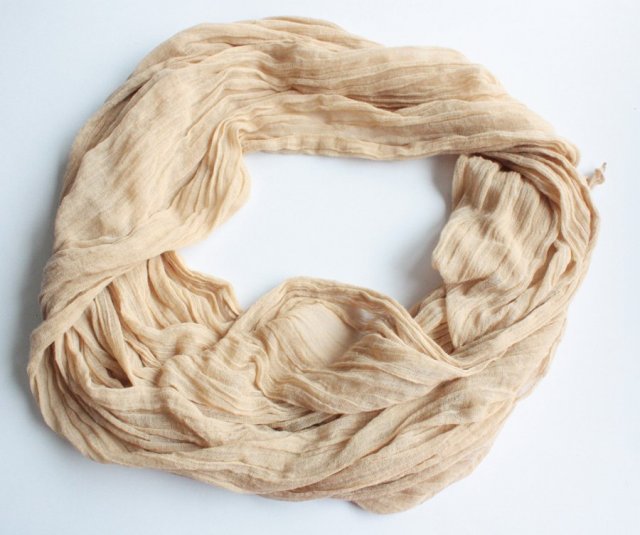Miękki, długi, luźno tkany szal w odcieniu beżu. Uniwersalny kolor sprawi, że szal będzie idealnym dodatkiem do ubrań w różnych odcieniach.