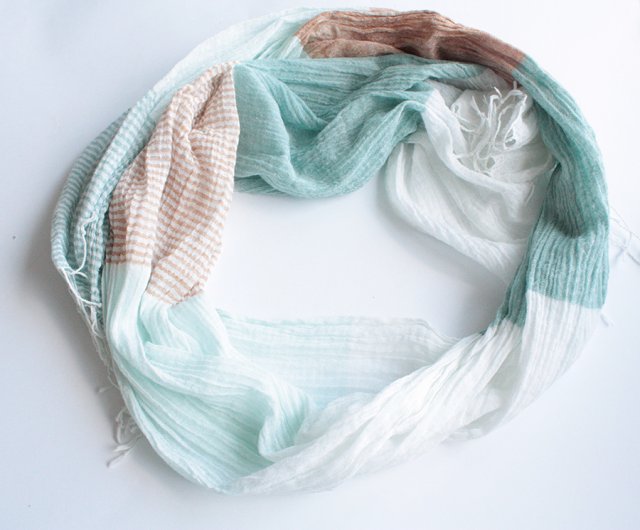 Piękny, luźno tkany szal wykonany prawdopodobnie z bawełny. Stonowana, subtelna kolorystyka.