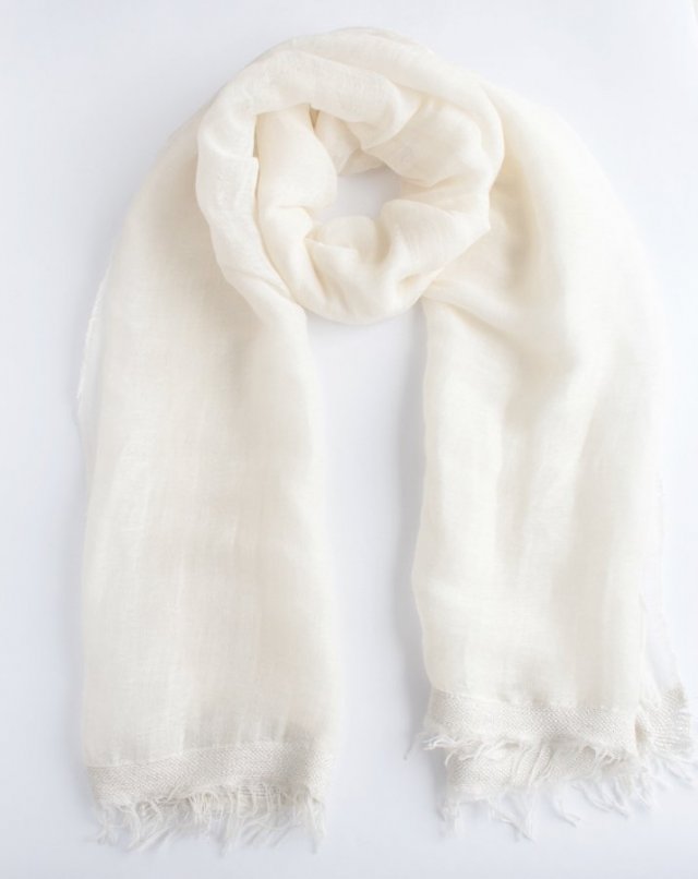 Miękki, delikatny w dotyku szal vintage w odcieniu bieli, na krótszych brzegach przetykany srebrzystą nitką. Materiał ma luźny splot. Całość tworzy efekt niewymuszonego, finezyjnego szyku. Szal będzie pasował zarówno do eleganckich, jak i bardziej swobodnych stylizacji.