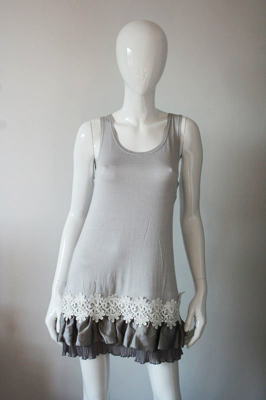 Urocza sukienka Angel Eye. Góra szara,cienka elastyczna na ramiączka . Dół z potrójnej falbanki.