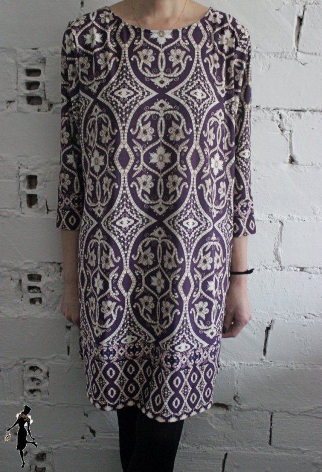 Sukienka firmy M&S Collection. Rozmiar z metki 52. Wymiary: obwód biustu-68cmx2 (mierzony od pachy do pachy), obwód pasa-62cmx2, obwód bioder-69cmx2, długość rękawa-47cm, długość sukienki-91cm. Skład materiału: 96% poliester, 4% elastan.