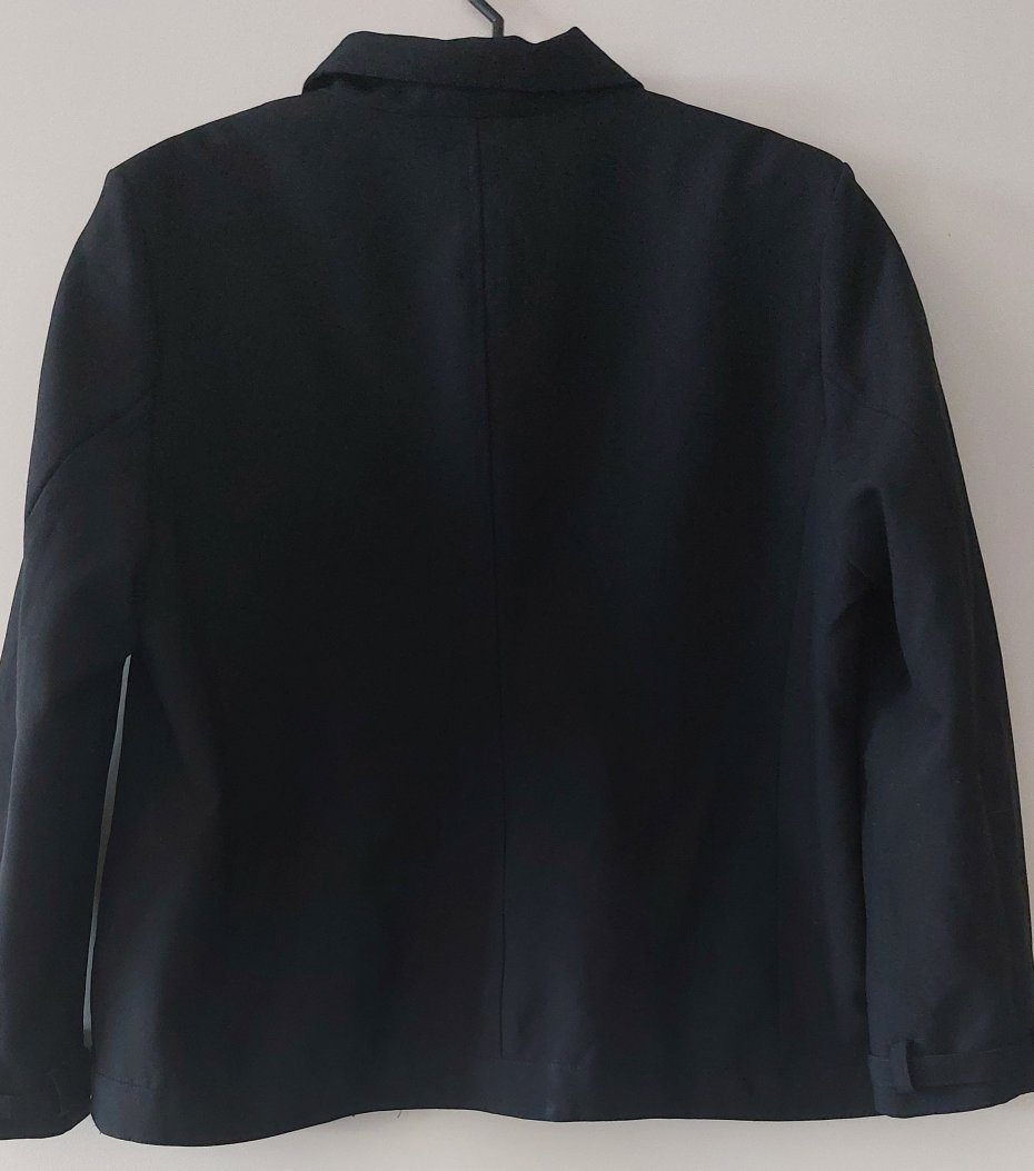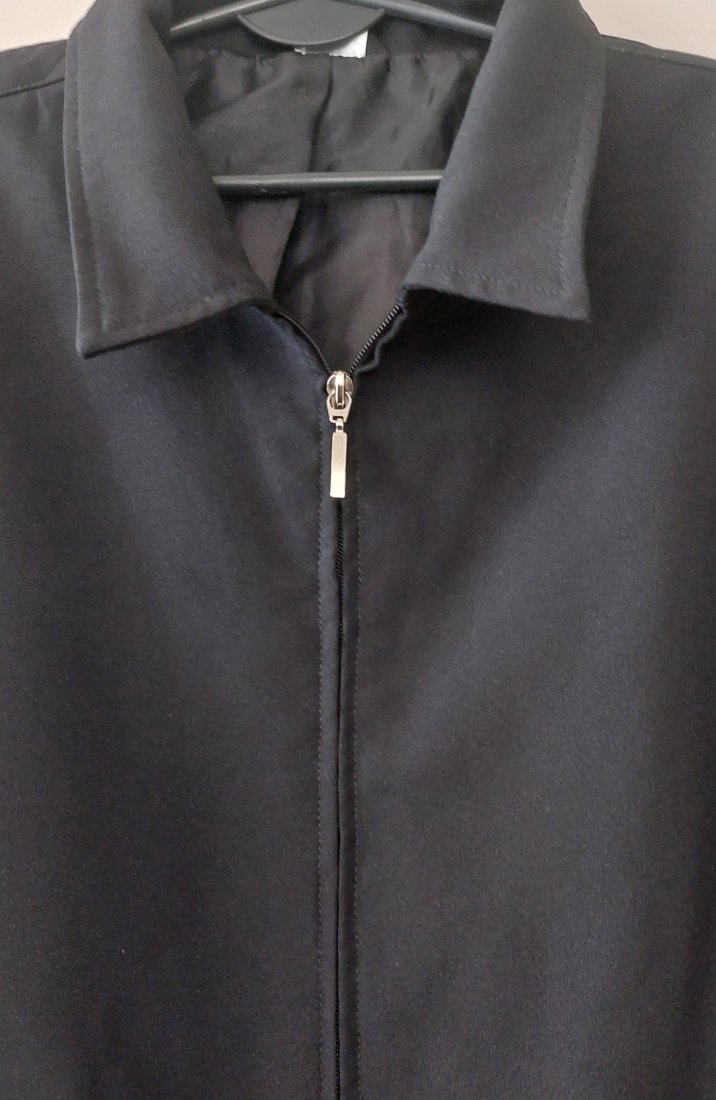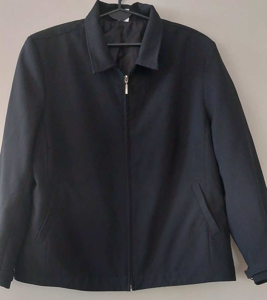 Czarna, lekka kurtka przejściowa o klasycznym kroju, zapinana na zamek, wewnątrz podszewka. Rozmiar z metki 50. Sklad: poliester.