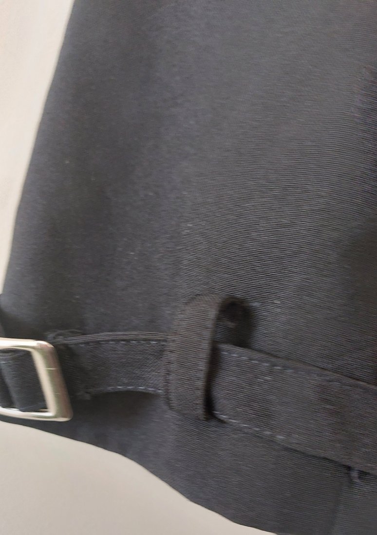 Stan: mała wada przy szwie na ramieniu. Długość 67 cm, szerokość pod pachami 62 cm, pas 59 cm, biodra 63 cm, długość rękawa 61 cm / 41 cm.
