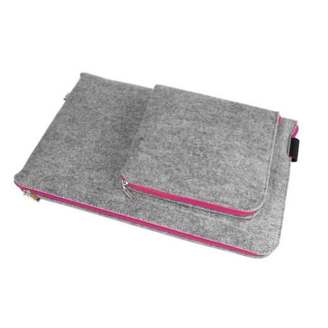 Pokrowiec z filcu na laptopa / tablet z naszytą dodatkową kieszonką na zasilacz.