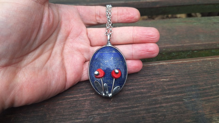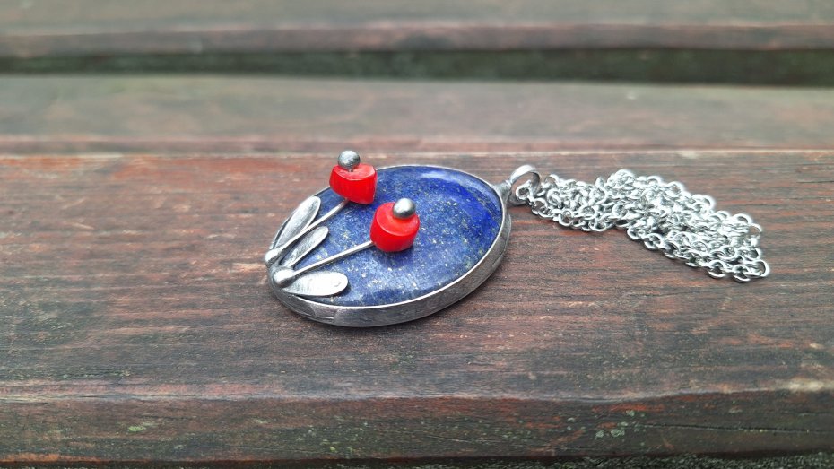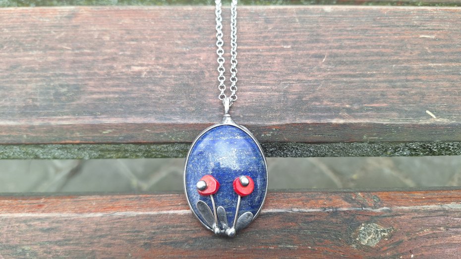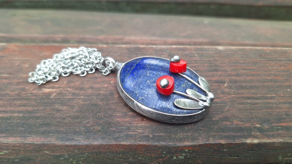 Tagi: #kolorowy wisiorek, #lapis lazuli, #wisiorek z kamieniem, #wisiorek z kwiatami