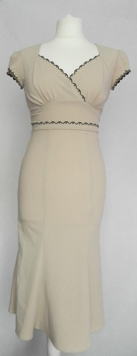 kolor bezowy, haftowane wykończenia w kolorze czarnym