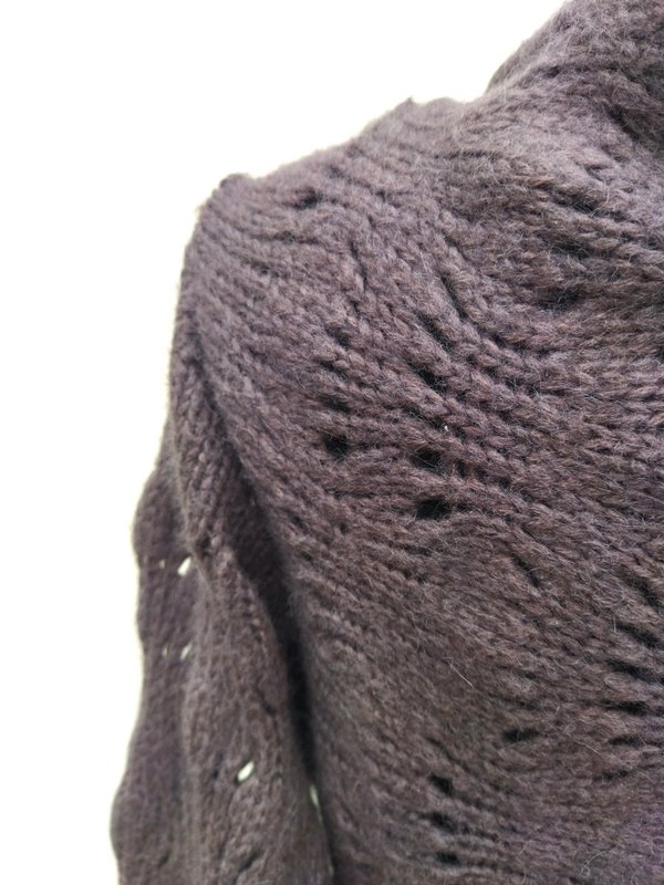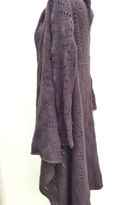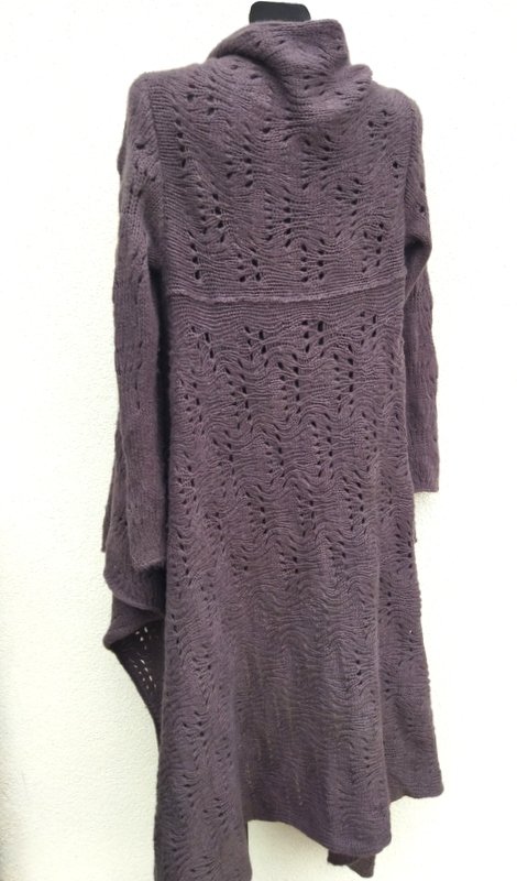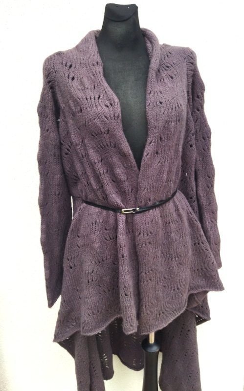 Wysokogatunkowy, ultra mięciutki, miły i niesłychanie lekki sweter z wełny młodych alpak w zgaszonym śliwkowo-fioletowym kolorze. fason otwarty z głęboko zachodzącymi na siebie połami dającymi wiele możliwości i swobodę w stylizacji. Można je nosić swobodnie opuszczone w dół nadając mu asymetrycznego wyglądu , można zarzucić na ramiona , nosić z paskiem lub bez. Sweter łączy w sobie delikatność i miękkość a zarazem trwałość, odporność na mechacenie i dużą termiczność. Warto go mieć w szafie.