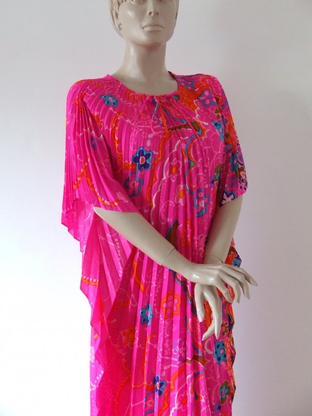Świetna plażowa sukienka w żywych kolorach, wiązana pod szyją, plisowana, uniwersalna. Made in Hawaii, prawdopodobnie lata 70.