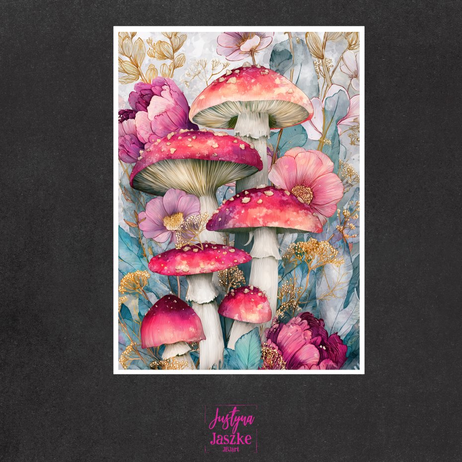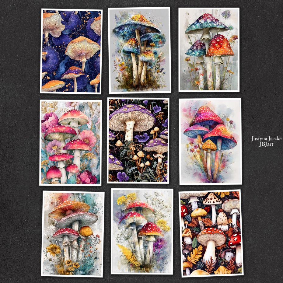 Magiczne grzyby - zestaw 9 grafik 15x21 cm