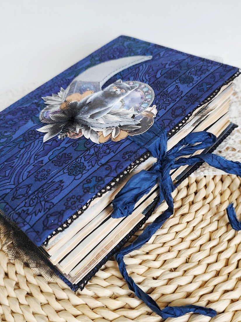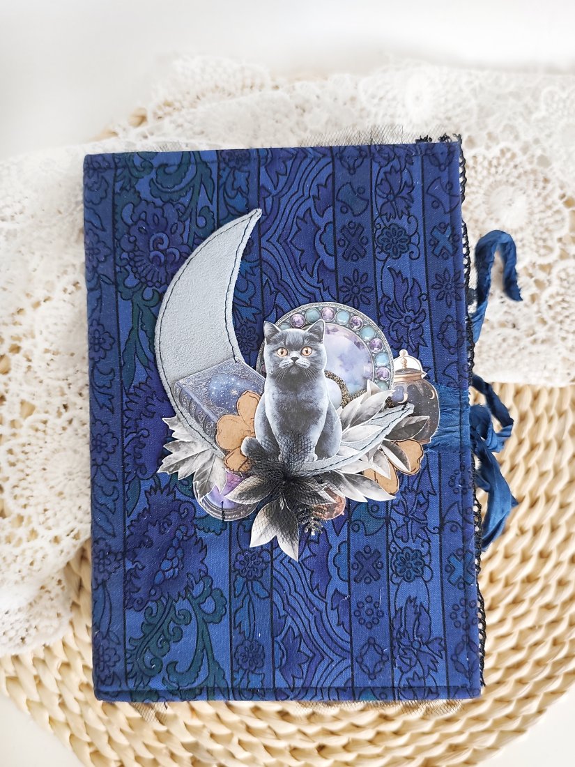 - Twarda, ręcznie wykonana okładka z bawełny i koronki