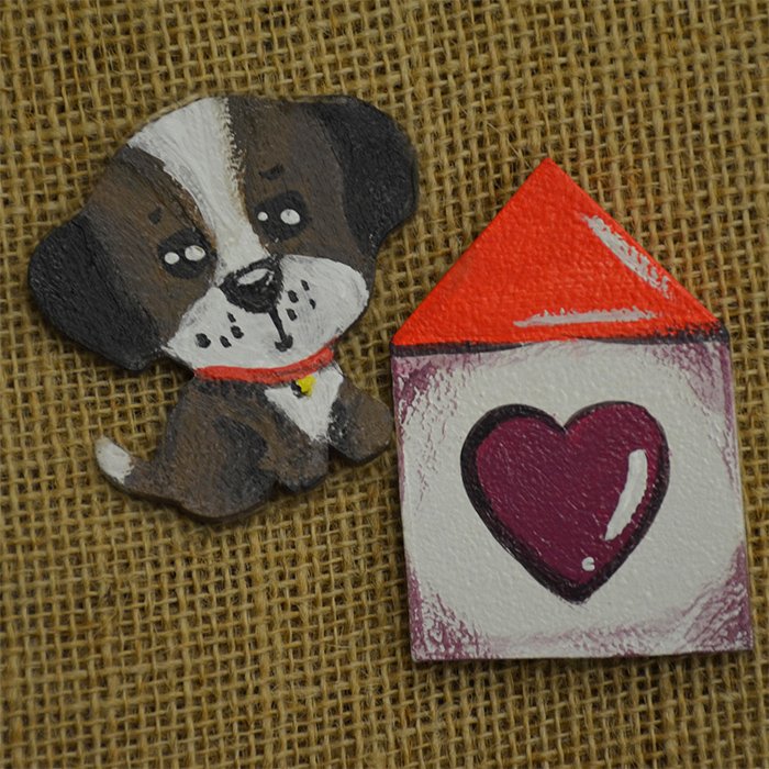 Magnesy na lodówkę - 2szt. Produkty wykonane własnoręcznie - wycięte z płyty drewnianej i pomalowany farbami akrylowymi. Pociągnięte bezbarwnym lakierem z połyskiem. Magnesy bardzo dobrze trzymają. Wymiary: ok 7x5cm i 6x6cm