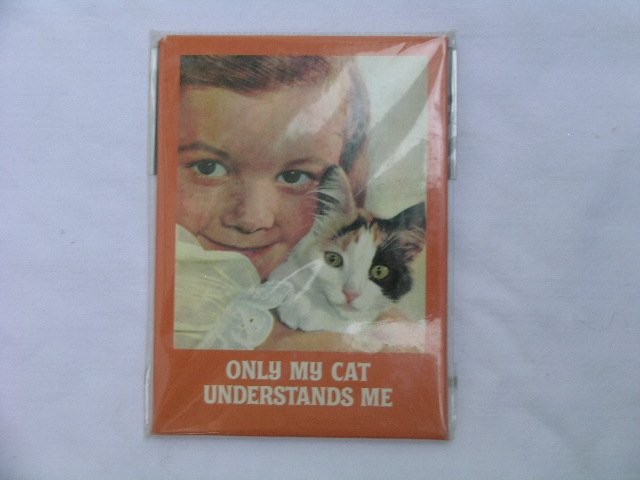 Spory, płaski, metalowy magnes z oczywistym stwierdzeniem, że Tylko Mój Kot Mnie Rozumie :) W vintage stylu, porządny, z tyłu cała płaszczyzna chwytliwa. Nie odpakowany. 6,5 x 9 cm.