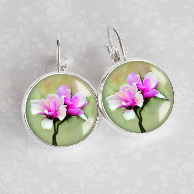 Kolczyki z oryginalną grafiką artystyczną, zatopioną pod wypukłym szkiełkiem, dającym delikatny efekt trójwymiarowości i oprawioną w bazę w kolorze srebra. Grafika jest najwyższej jakości, wyraźna i nasycona. Bigle hipoalergiczne, zapinane, sztywno przymocowane do oczka, bez niklu i ołowiu. Oryginalne kaboszony- wykonane ręcznie według mojego projektu i przeze mnie, z dbałością o każdy detal.
