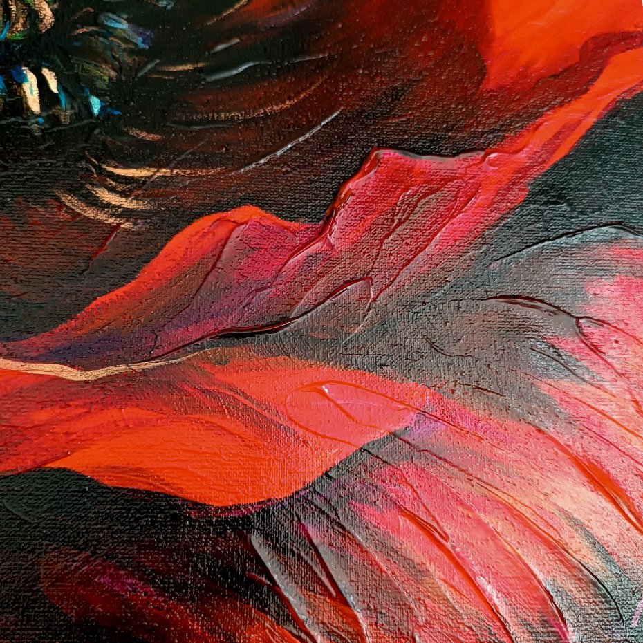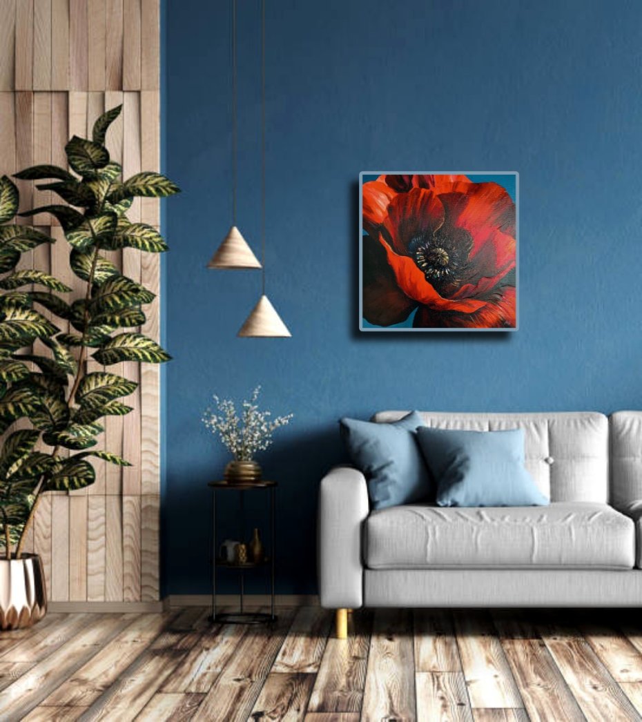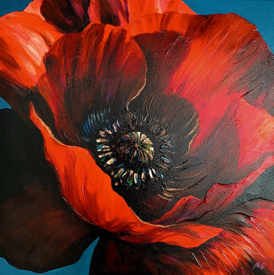 Mak jest kwiatem tak bardzo wpisanym w polski krajobraz jak chyba żaden inny kwiat :-) "Mak" to obraz namalowany przeze mnie na podobraziu bawełnianym farbami akrylowymi z elementami złotego szlagmetalu. Obraz ma wyraźną fakturę a także zamalowane brzegi, co czyni go gotowym od razu do powieszenia. Można go również oprawić w ramę. Wymiary obrazu to 40cmx40cm. Obraz jest pokryty werniksem satynowym. Będzie stanowił piękny kolorystyczny akcent w Państwa domu. Zapraszam! Monika