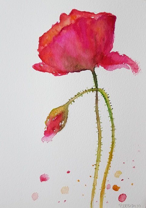 Praca wykonana farbą akwarelową na papierze akwarelowym 300g/m2, format A5. Przedstawiona jest w przykładowej ramie. Zapraszam :)