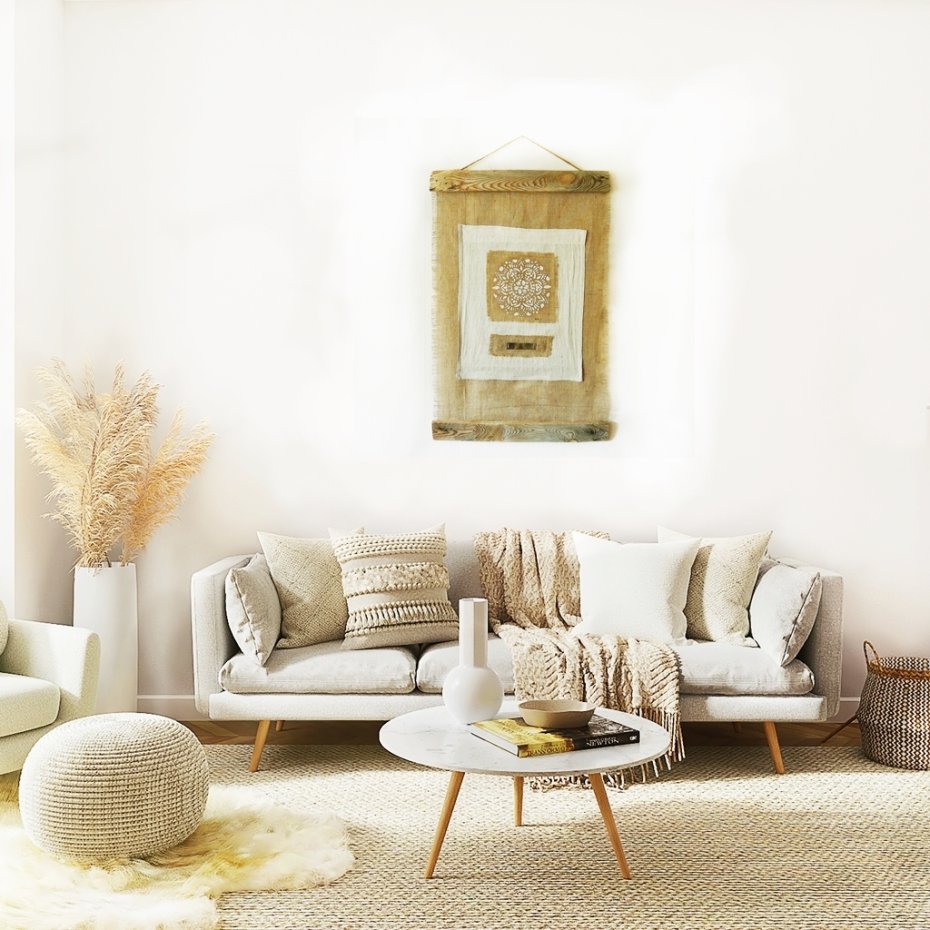 Tagi: #dekoracje na ścianę japandi, #dekoracje wabi-sabi drewna, #makrama boho, #makrama na ścianę