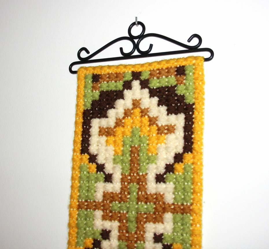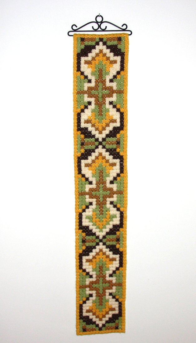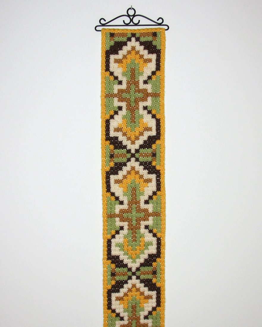 Makatka, tkana dekoracja do zawieszania na ścianie lub drzwiach, meblach. Barwne wzory. Szwedzkie rękodzieło.
