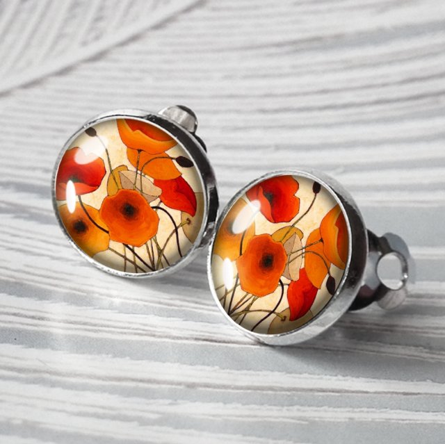 Oryginalne klipsy z grafiką, zatopioną pod wypukłym szkiełkiem ( tzw. szklanym kaboszonem dającym delikatny efekt trójwymiarowości) i oprawioną w hipoalergiczną bazę w kolorze srebra, bez niklu i ołowiu. Grafika jest najwyższej jakości, bardzo wyraźna i nasycona. Baza i zapięcie antyalergiczne, posrebrzane. Urocze, nieduże, delikatne klipsy. Wielkość -średnica- 1,5 cm.